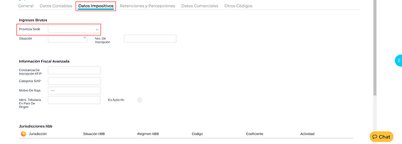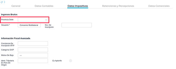 Provincia Sede: es importante completar este campo cuando el cliente o proveedor cuente con sede en alguna jurisdicción.