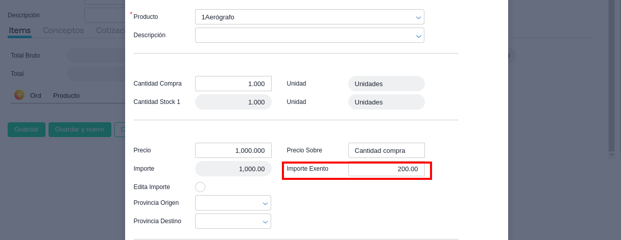 El campo “Importe Exento” que se encuentra en el detalle del producto del comprobante se refiere únicamente a la exención de IVA.