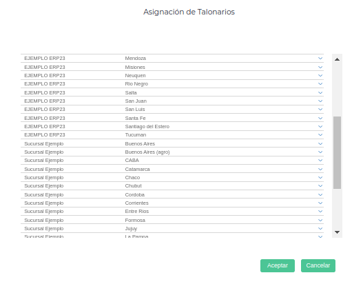 Importante: se deberá configurar un talonario por cada sucursal que posea la empresa y por cada jurisdicción en caso de corresponder: