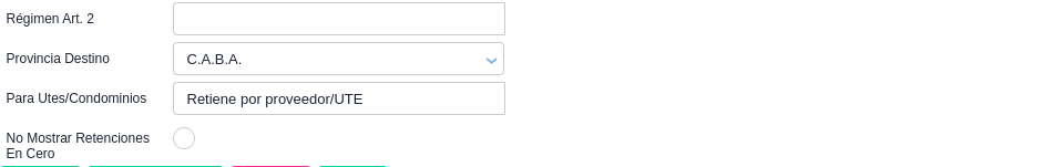Según la provincia indicada en el campo “Retención” aparecerán para su selección las opciones disponibles.