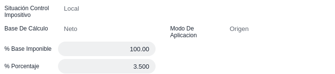 Código impositivo: en este atributo se debe ingresar el código del impuesto para el tipo de retención según AFIP.