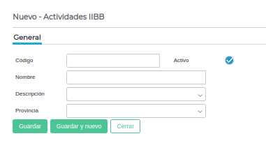 Menú → Gestión empresarial → Impuestos → Maestros → Actividades IIBB