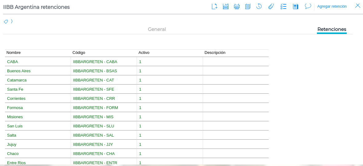 Tomaremos de ejemplo IIBB Argentina retenciones, pero aplica también para IIBB Argentina percepciones.