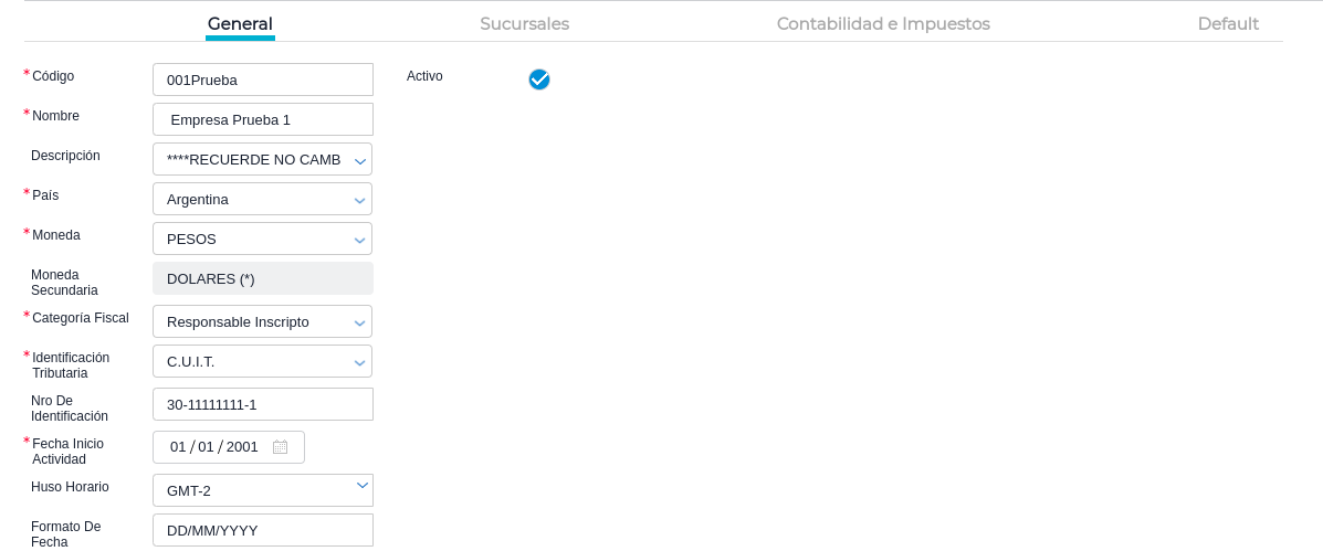 Menú → Configuración → Empresas → Configuración → Empresa