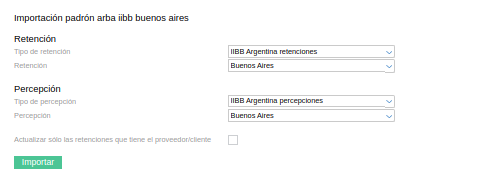 Cabe mencionar que algunos padrones precisan que se indique la retención, mientras que otros sólo precisan que se coloque el Tipo de Retención. Por otro lado, se destaca también que para las importaciones con padrón disponibilizado por Finnegans, el período para importar del padrón es por default el del mes que actualizado (es decir, no es posible importar padrones de períodos anteriores).