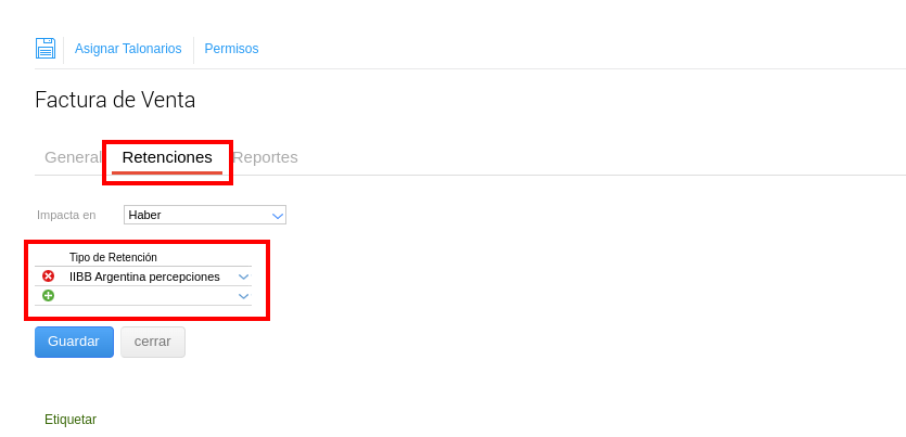 Importante: en el caso de retenciones efectuadas debe configurarse siempre un talonario por Empresa.