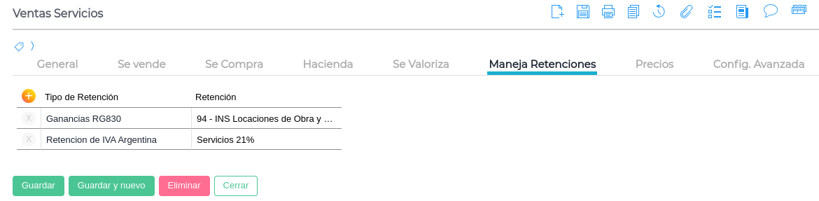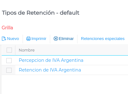 Gestión Empresarial → Impuestos → Maestros → Tipos de retenciones
