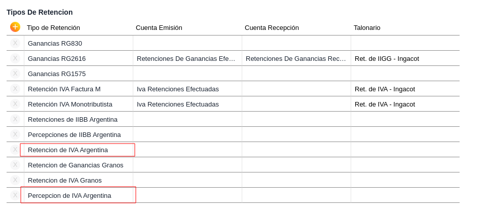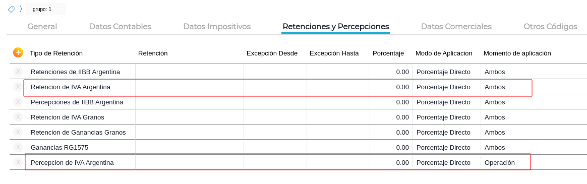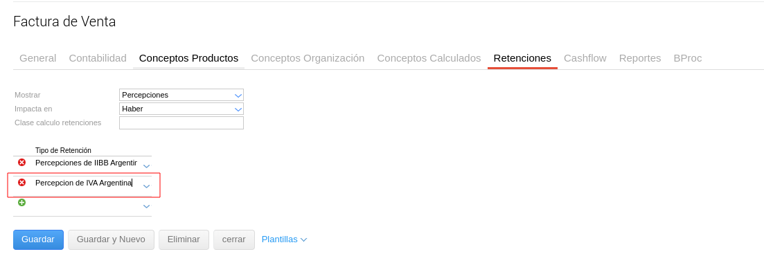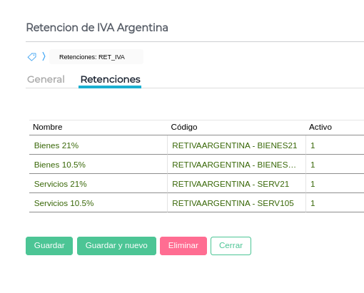 Este módulo ya viene preconfigurado con las siguientes percepciones y retenciones de IVA: