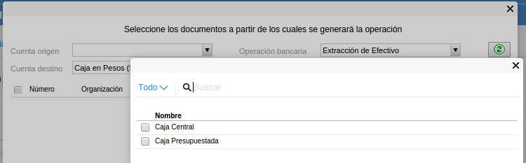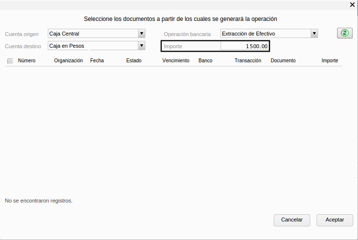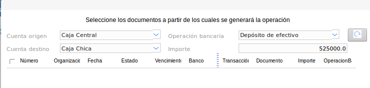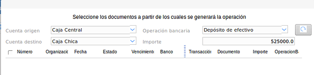 En caso de querer utilizar una sola operación bancaria, el selector respectivo en el asistente del Movimiento de Fondo traerá esa única.