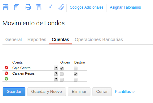 En caso de agregar más de una cuenta en cualquier origen o destino, esas cuentas serán las únicas opciones posibles en sus selectores correspondientes.