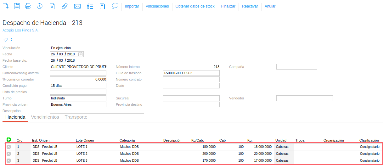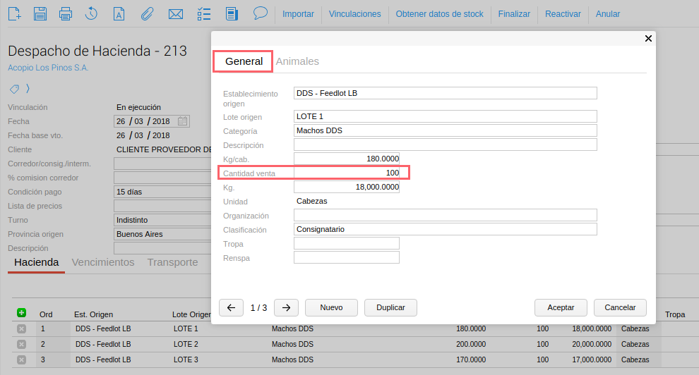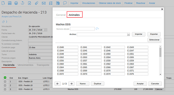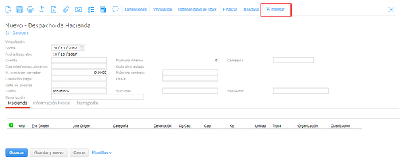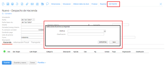 En la mayoría de movimientos de hacienda como despachos, cambios de categoría y en el informe de caravanas tienes disponible la opción de importar archivos generados por balanzas Tru Test o xls de usuario. De esta forma agilizas tiempo de carga.