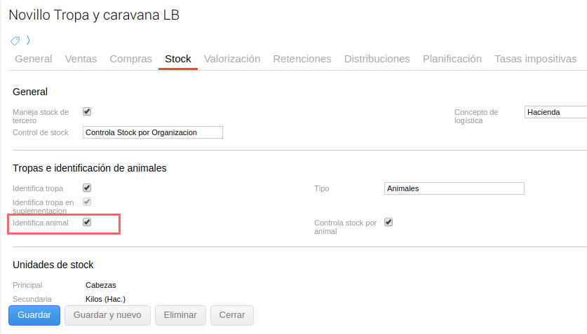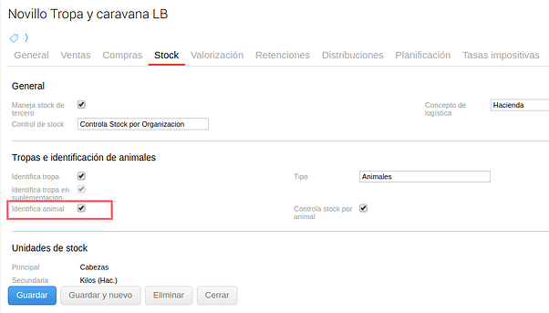 En casos donde se requiera (categorías de origen o destino) deben estar configuradas para “identificar animales”.