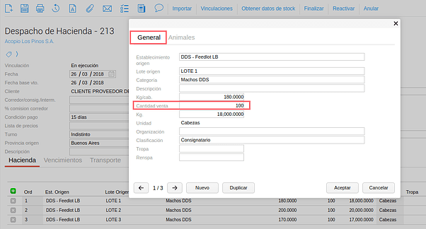 Nota: para importar “traslados” desde el informe de caravanas es necesario que el documento a seleccionar esté configurado para NO generar pesajes.