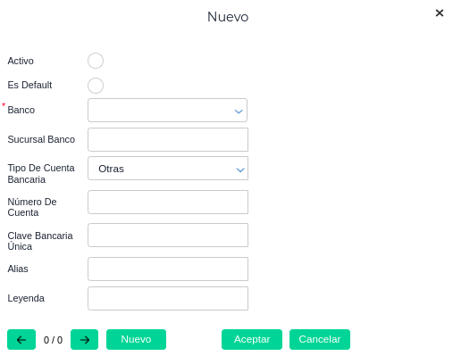 Para incorporar una nueva cuenta bancaria se va a desplegar un pop up, donde se deberá indicar según este orden: