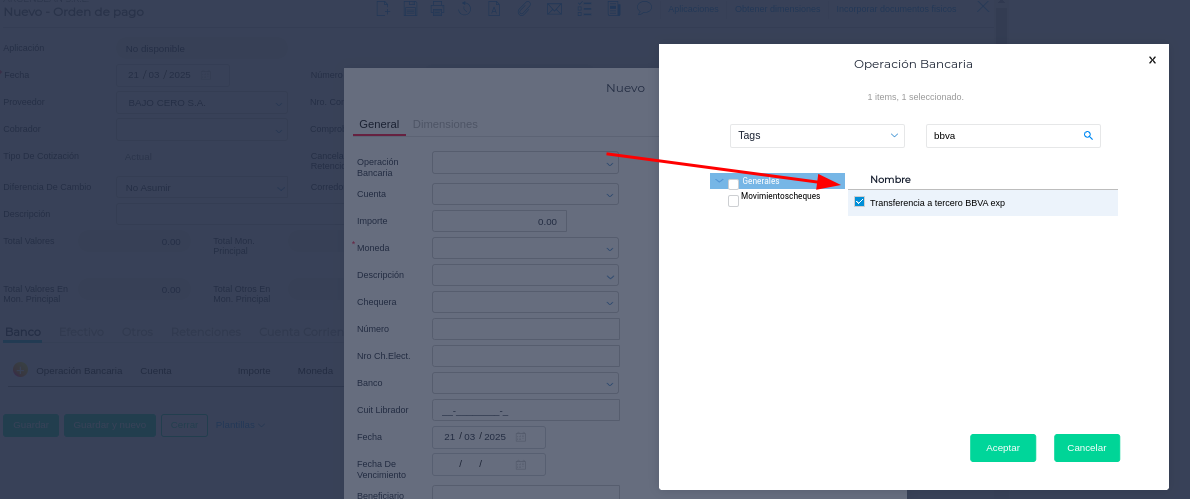 Configurar la operación bancaria que se utilizará en el pago.