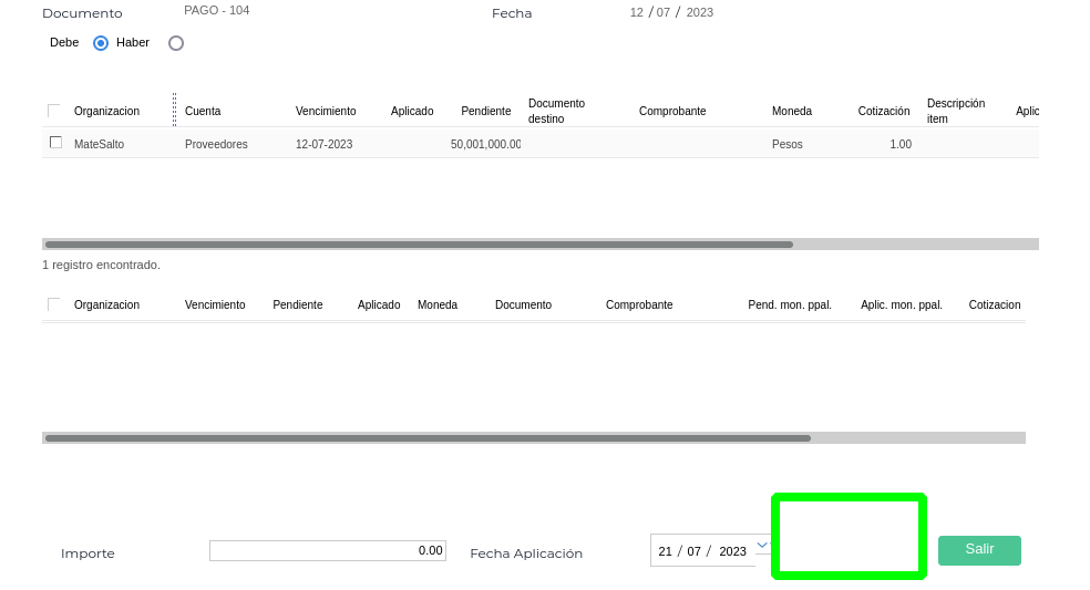 Por ejemplo: “Orden de Pago - aplicar”
