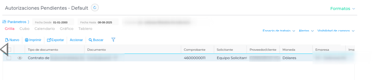 - Revisar los filtros aplicados en el informe “Autorizaciones pendientes”: