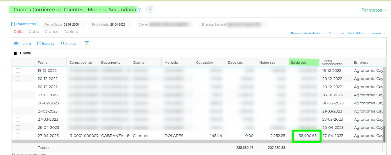 No coinciden los saldos del los informes Cuenta Corriente y Composición de Saldos (moneda secundaria: dólares)