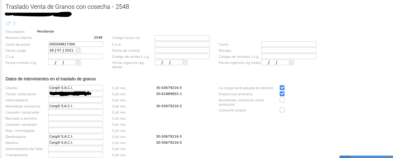 - Ir a GRANOS > TRASLADO DE GRANOS