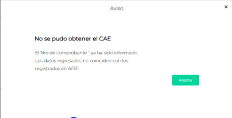 Al intentar obtener CAE de una factura de venta, el sistema arroja el siguiente mensaje: