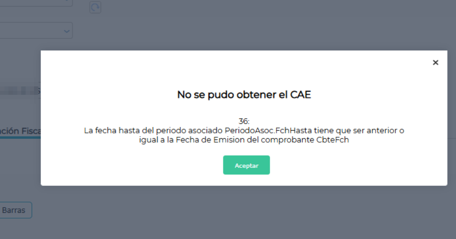 36 : La fecha hasta del periodo asociado PeriodoAsoc.FchHasta tiene que ser anterior o igual a la Fecha de Emision del comprobante CbteFch