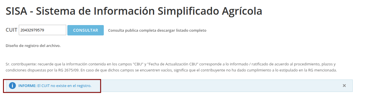 Desde esta página se puede revisar los cuit que están en el padrón SISA.