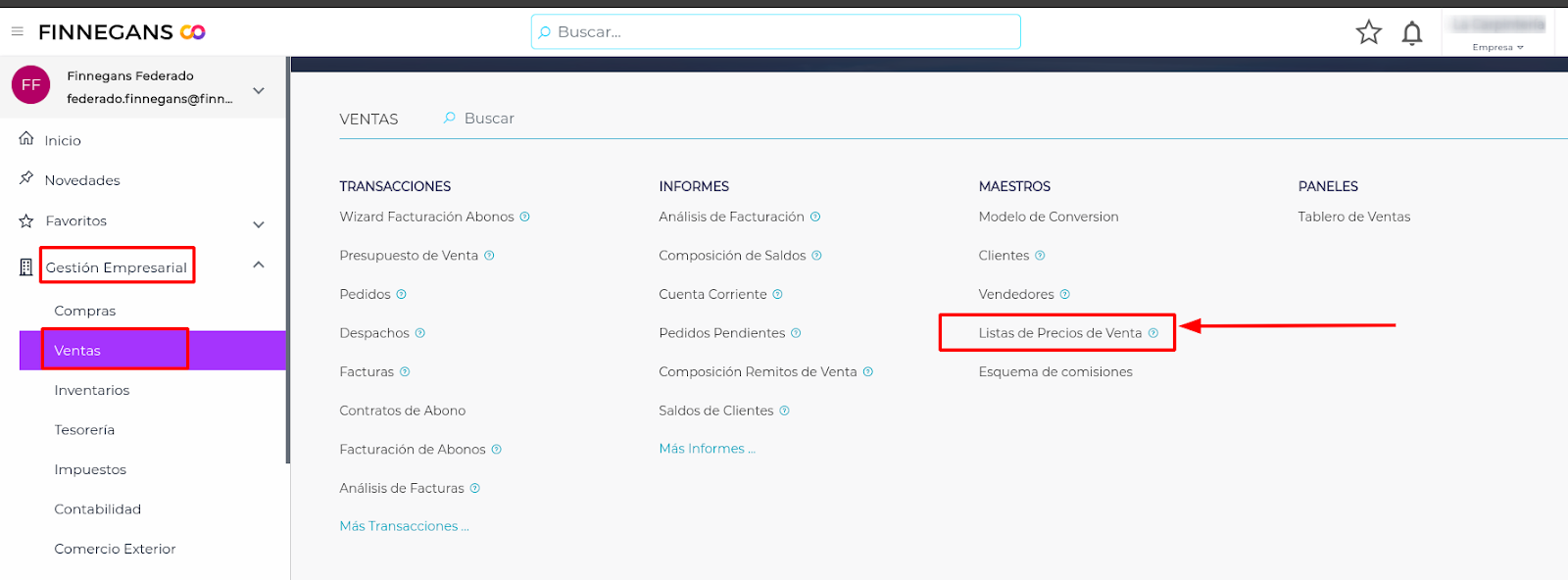 Ruta: Menú - Gestión Empresarial - Ventas - Maestros - Lista de Precios de Venta