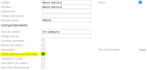 - En la solapa general, debe estar tildado el checkbox de “utiliza operaciones bancarias”