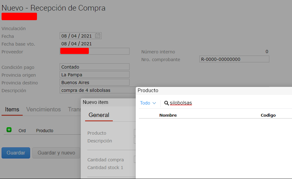 Hay un producto cargado, que ya se ingresó al sistema cuando llegó la factura por esa compra. Al querer cargar la recepción, no trae ese producto. ¿Cómo hago para que el sistema traiga el producto cargando al querer hacer una recepción?