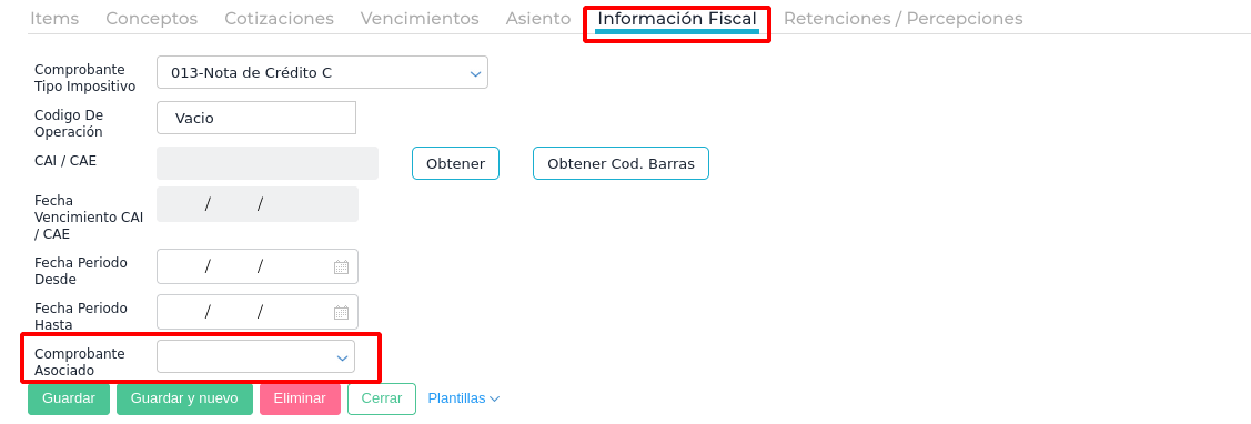 Corroborar que la factura de venta que queremos visualizar desde el campo “comprobante asociado” tenga configurado un comprobante tipo impositivo en la solapa información fiscal.