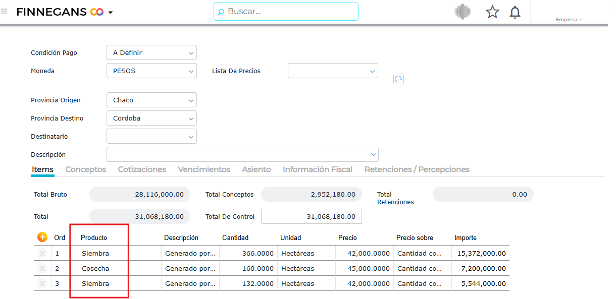 - Verifica el producto que se cargó en la Factura de Compra que deseas modificar.