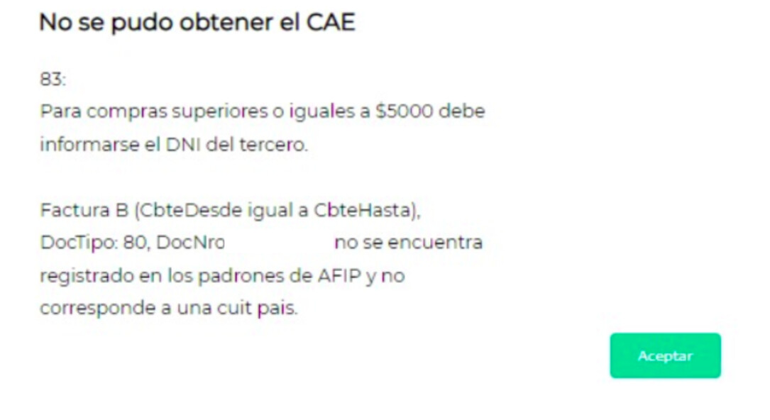 83: Para compras superiores o iguales a $5000 debe informarse el DNI del tercero.