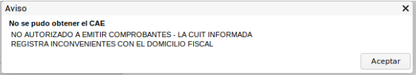 El mensaje se emite porque no se puede obtener CAE.