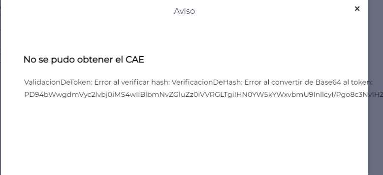 El cliente visualiza el siguiente mensaje de advertencia al obtener CAE en una Nota de crédito: