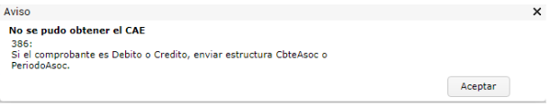 Si el comprobante es debito o crédito, enviar estructura CBTEASOC o PERIODOASOC".