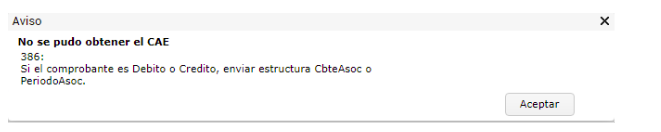 El sistema muestra el mensaje de advertencia “No se puede obtener CAE