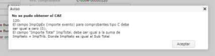 No se puede obtener CAE y el sistema emite el siguiente mensaje de error: