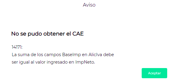 Al intentar obtener CAE, sale este mensaje: