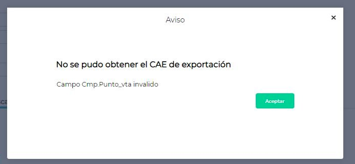 Se visualiza un cartel de advertencia al momento de querer obtener CAE en una “Nota de Crédito de Venta de Exportación”.