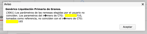 (3061) Los parámetros de las remesas elegidas por el usuario no coinciden”