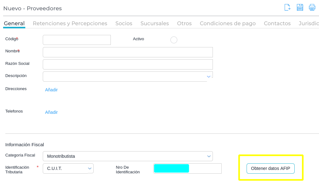 El sistema no permite obtener datos de AFIP en la creación de un proveedor o cliente.