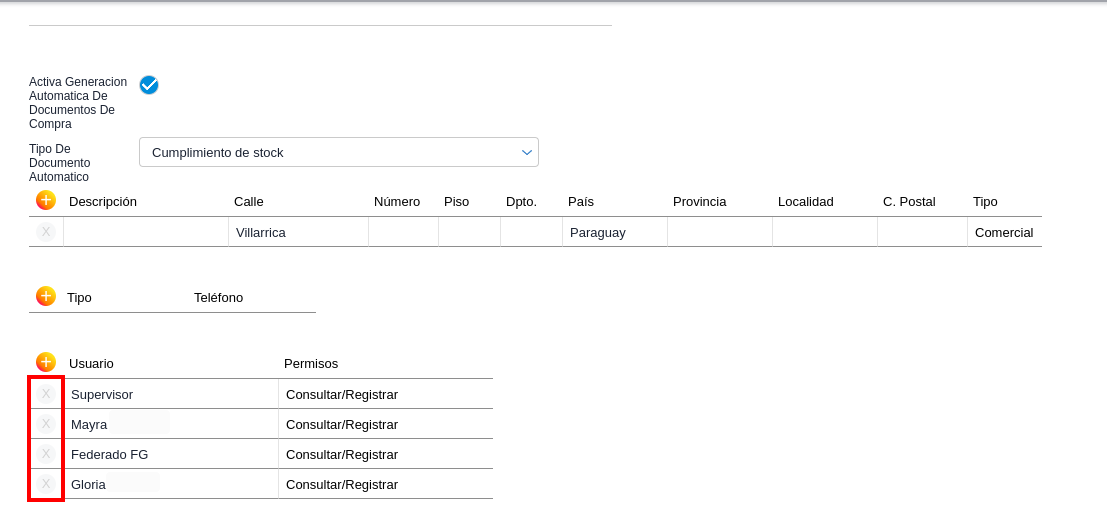 - En usuario quitar el o los usuarios a los cuales se les desea ocultar dicha sucursal