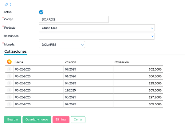 La carga de precios de mercado de los distintos productos, se obtienen de forma automática por medio de Deals.