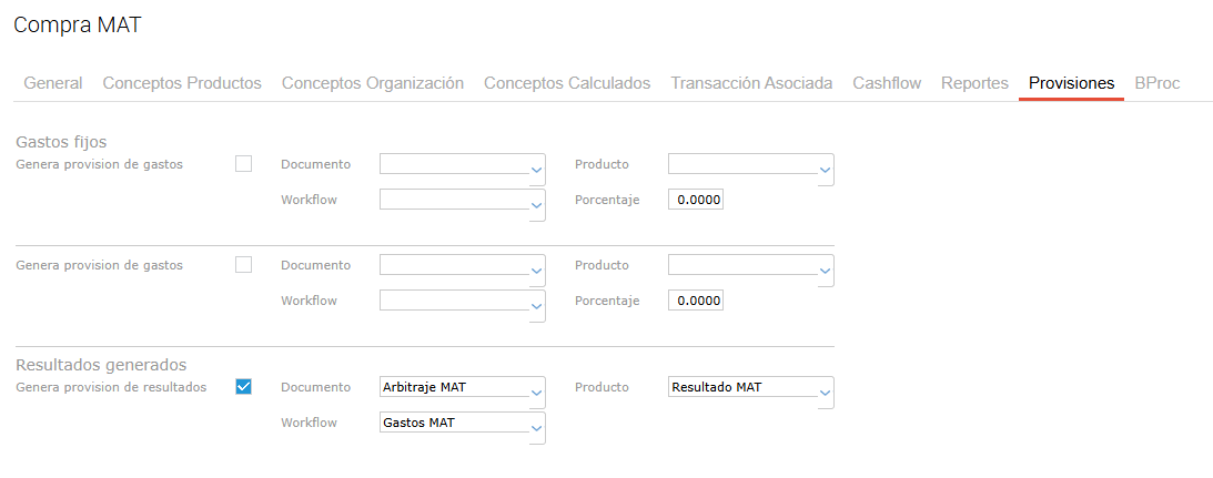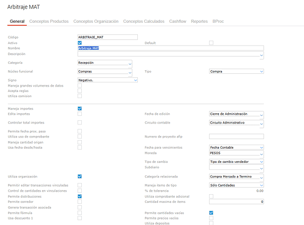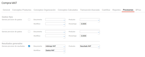 También se puede generar la provisión del arbitraje o resultado entre venta y compra. Para esto se deberá configurar un documento y producto según necesidad del usuario y asignarle un workflow.