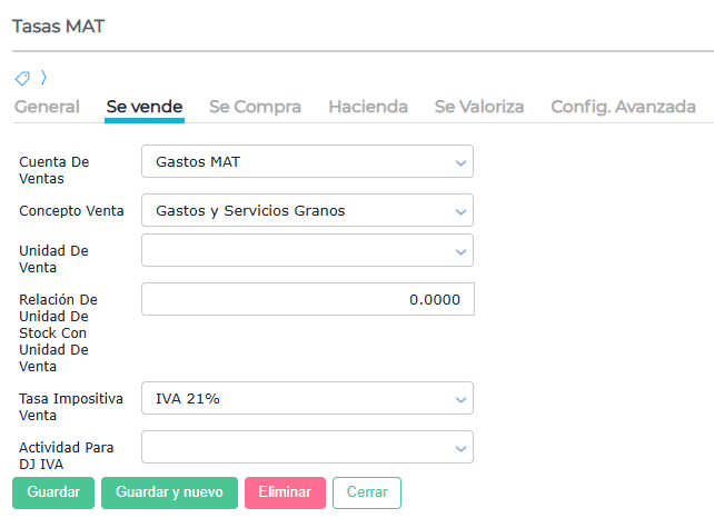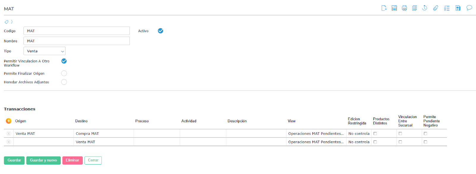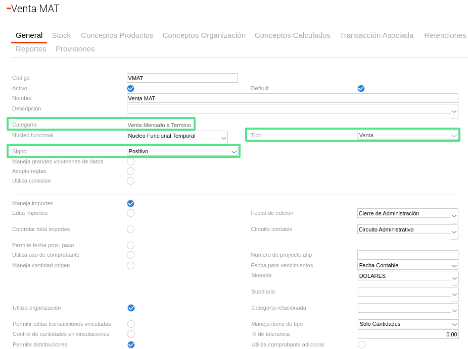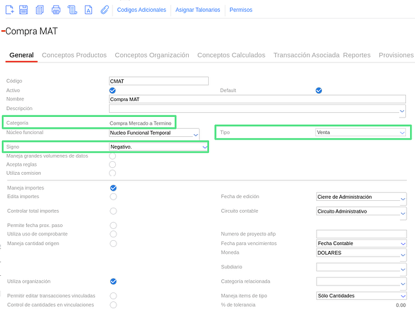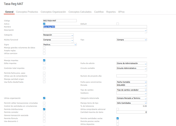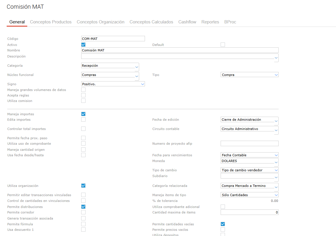 - Tipos de Documentos: Venta MAT, Compra MAT, Comisión MAT, Tasa Reg MAT y Arbitraje MAT.