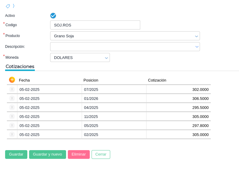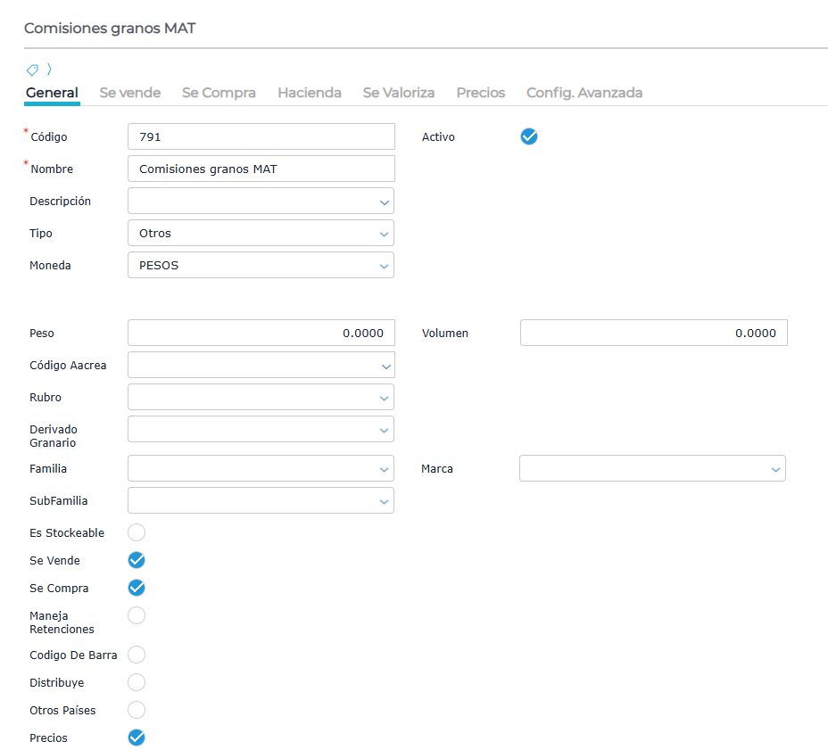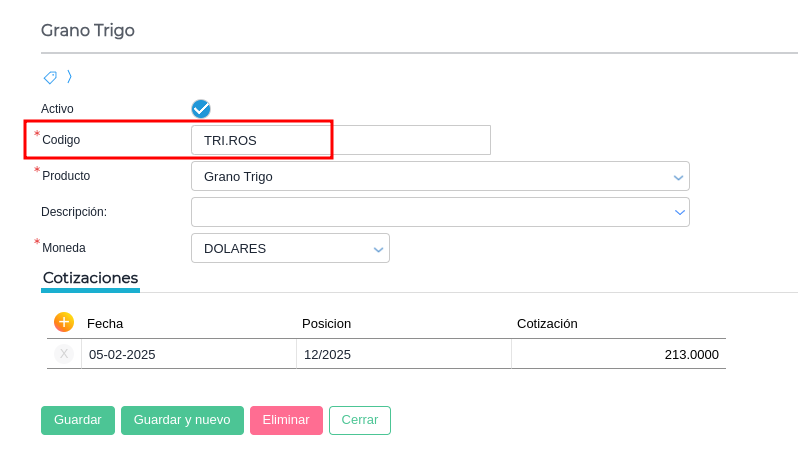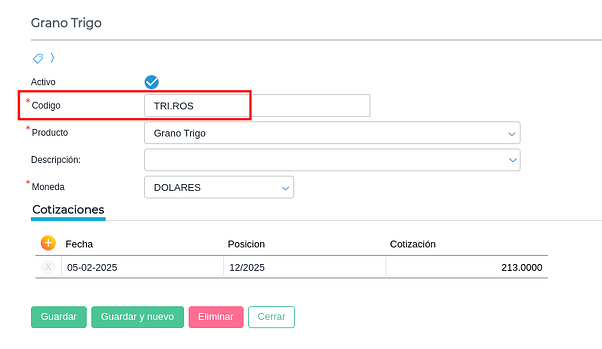 En el maestro de Carga de Precios MAT, los distintos granos deben estar codificados con un código específico que permite linkear con Deals para obtener la cotización correcta, es muy importante respetar esta configuración: