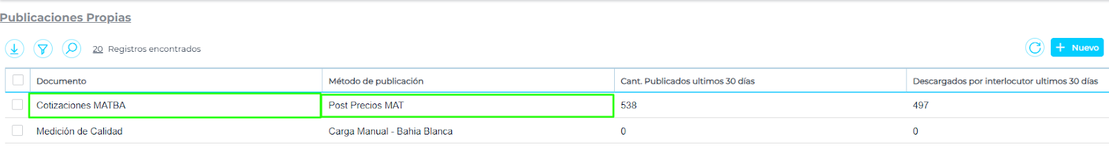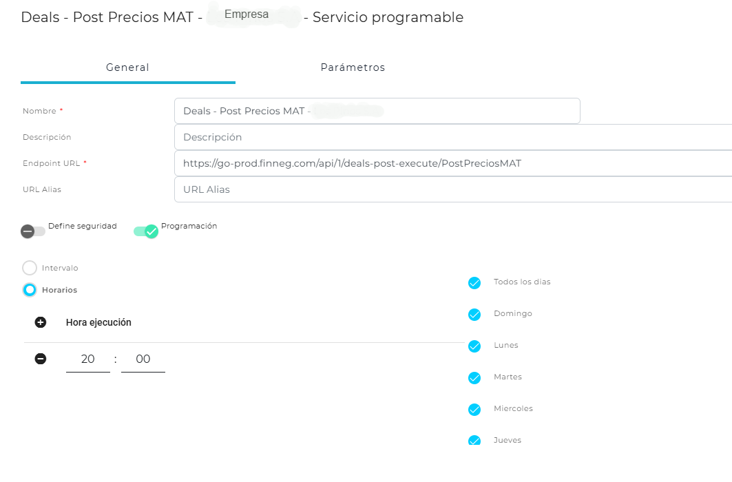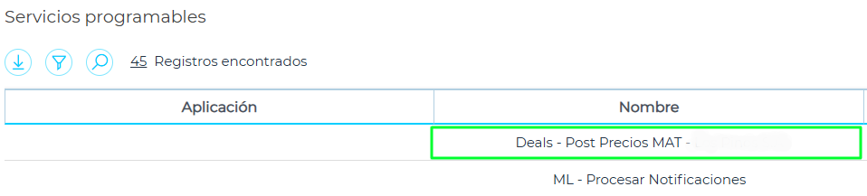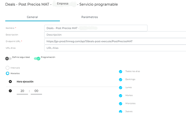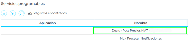 Menú → Servicios Programables → Deals - Post Precios MAT - (Nombre de la empresa)