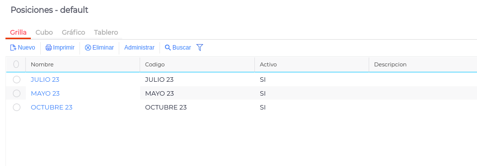 Con la configuración de Deals, se obtienen las posiciones con las distintas combinaciones de mes y año con las cuales vamos a operar.