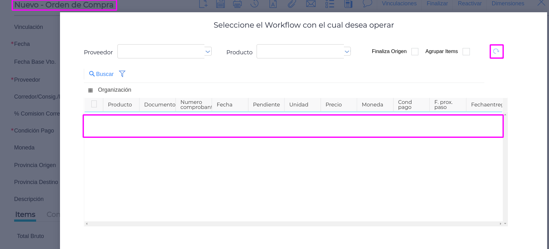 Consulta: Al crear una Orden de compra con asistente no se visualiza Pedido de Cotizaciones de Compra