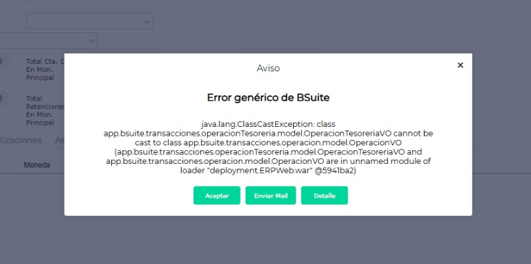 java.lang.ClassCastException: class app.bsuite.transacciones.operacionTesoreria.model.OperacionTesoreriaVO cannot be cast to class app.bsuite.transacciones.operacion.model.OperacionVO (app.bsuite.transacciones.operacionTesoreria.model.OperacionTesoreriaVO and app.bsuite.transacciones.operacion.model.OperacionVO are in unnamed module of loader “deployment.ERPWeb.war” )"